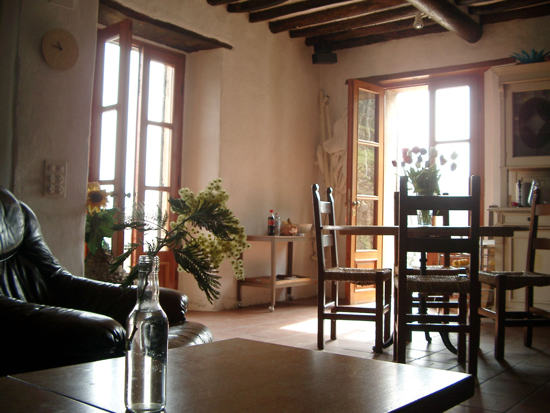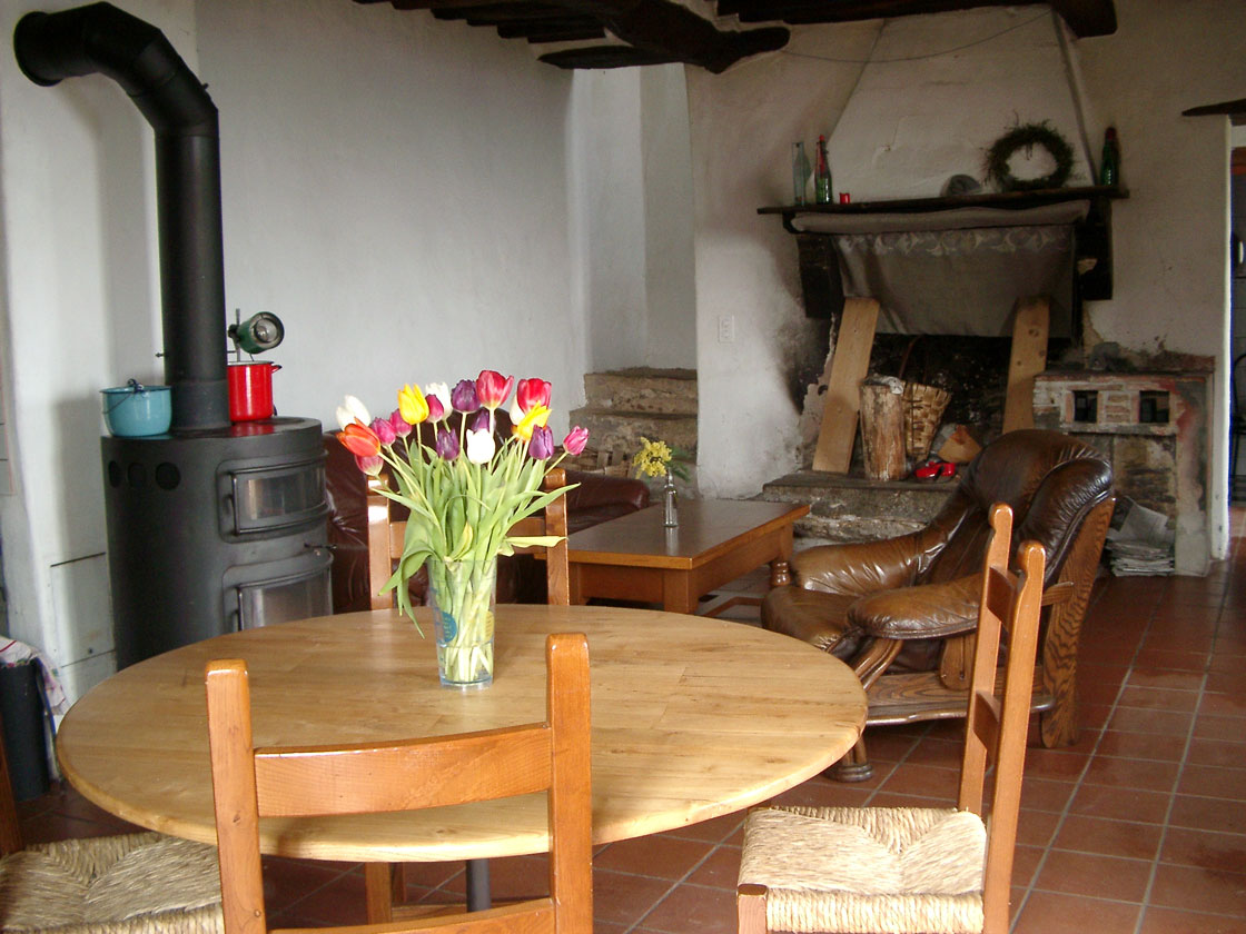 Wohn- und Esszimmer mit Cheminée und Holzofen